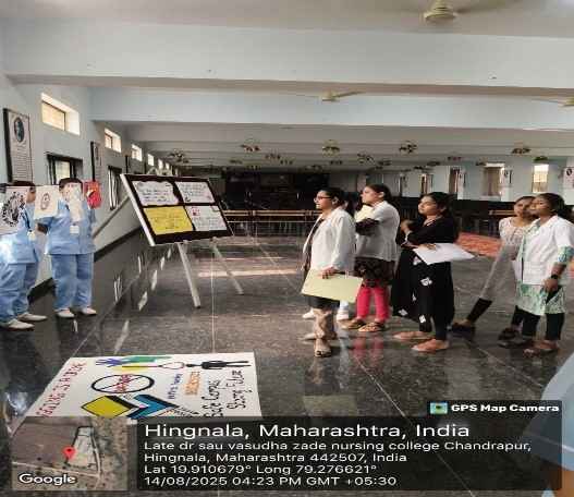 On the occasion of National Antiraging day/week, we have conducted competitions like slogan writing & logos designing competitions on dated 14/08/2025. An Anti-Ragging Awareness Program was organized on dated 15/08/2025, in the premises of Late Dr. Sau Vasudha Zade Nursing College, Chandrapur in the wake of anti-ragging week to enhance awareness among the students to have a ragging free and safe campus for study. The programme commenced with a warm welcome addressed by our anchors Ms. Astha Lode & Ms. Raksha Kukudkar 4th semester students. Ms. Sneha Nandeshwar, Assistant Professor from the department of Mental Health Nursing, introduced the Antiraging day. In her address, she emphasised the importance of eradicating ragging from educational institutions and of retaining our college as a ragging free campus. Following that, Ms. Zebanaz Sheikh, Assistant Professor from OBGY department, delivered the seminar address. She also stressed the importance of creating awareness and educating students about the detrimental impact of ragging, encouraging everyone to be vigilant and being proactive in preventing such incidents & also some points also covered in the workshop like Antiraging registration. Following that, prize distribution was done by respected dignitaries, Dr. Vishwas Zade sir president of Jeevan Jyoti Pratisthan, Dr. Nandali Zade ma’am Vice President of Jeevan Jyoti Pratisthan, prof. Narendra Kolte Sir & Dr. Snehal Patil ma’am Associate Professor from the Department of medical surgical Nursing. Runner for the slogan writing competition was Ms. Sakshi Padgilwar from BSc 4th semester & winner was Ms. Monali Garpatti BSc. Runner for the Logos Designing competition was Ms. Shreya Bhoyar from BSc 7th Sem & winner was Ms. Anagha Terkar BSc 7th Sem Here Program comes to end by vote of thanks which was given by Ms. Siddhi Kuthe 4th semester student.